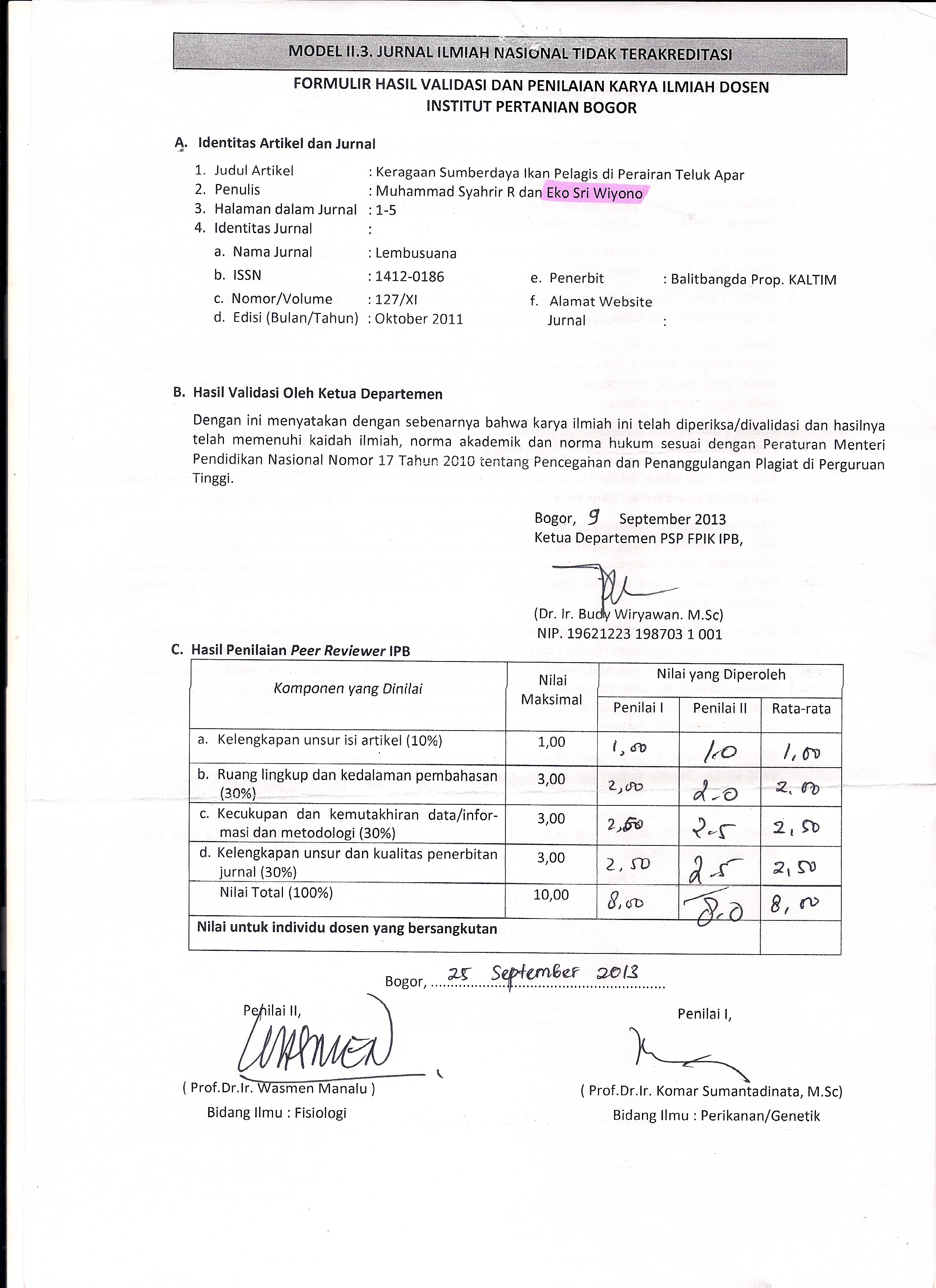 25. Lembar Validasi. Keragaan Sumberdaya Ikan Pelagis di Perairan Teluk Apar (3.497Mb)